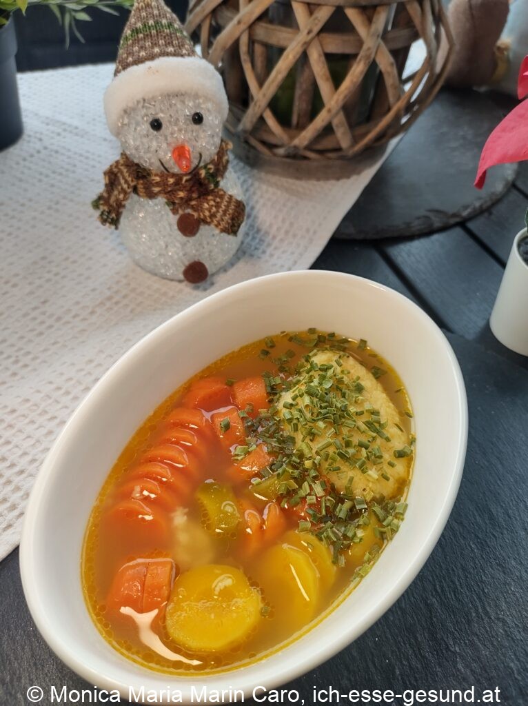 • Wärme und Komfort: Warme und wohltuende Gerichte wie Suppen, Eintöpfe und Schmorgerichte helfen, den Körper warm zu halten und ein Gefühl des Wohlbefindens zu vermitteln. Achte darauf, dass du hochwertige Proteine und Fette und saisonales Gemüse verwendest.