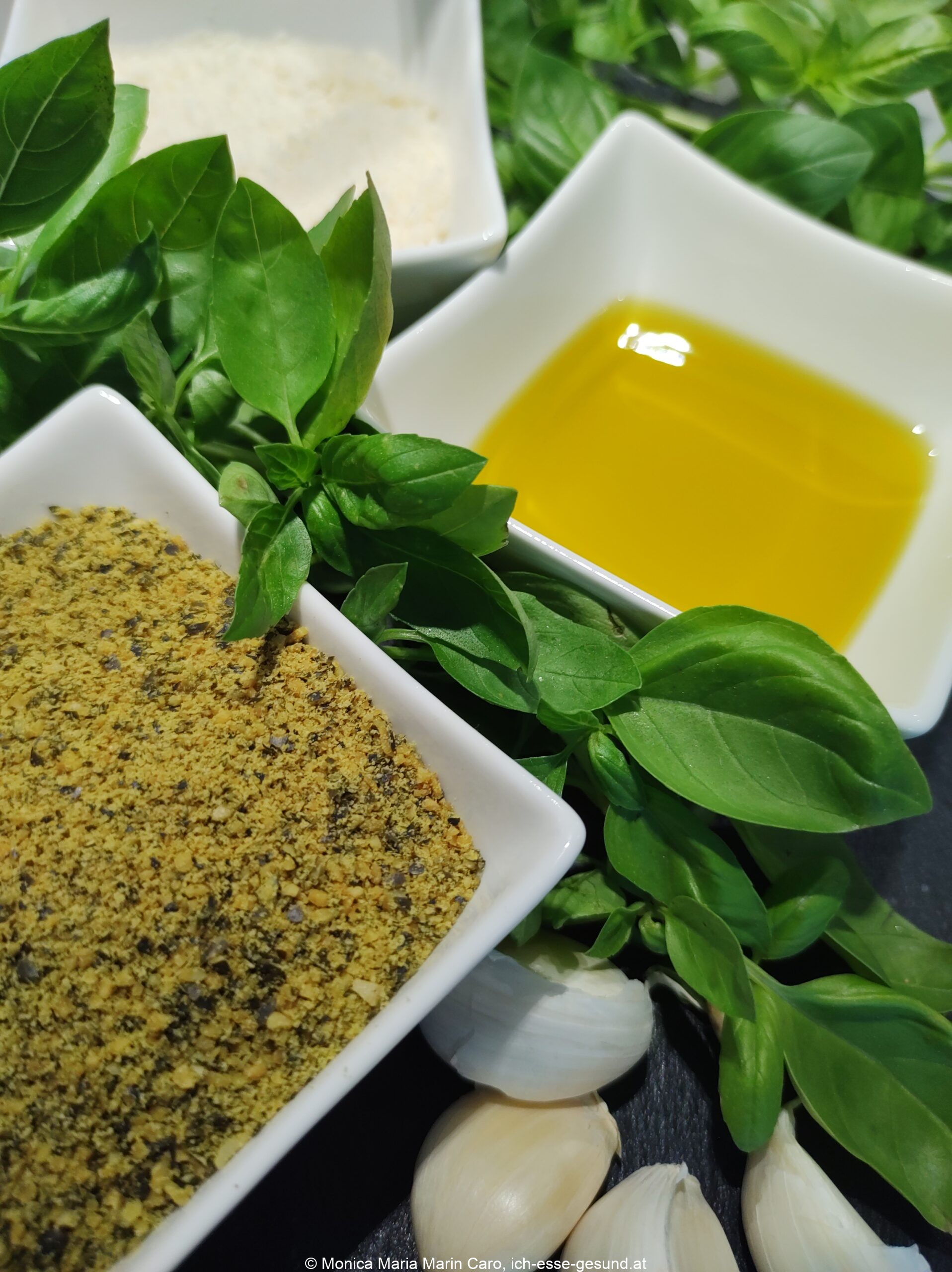 Meine Version von Pesto enthält die folgenden Zutaten: